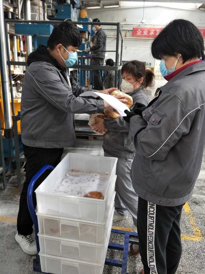 2月12日,澳华公司复工申请获批,首批复工人员73人,由于疫情当前,复工人员人数受限,交通、进出不便,经公司研究后决定每天上一班,时间从早上8:40到下午15:40。考虑到上班时间长,澳华公司为员工准备了面包缓解就餐问题,员工均能做到克服当前形势,以公司生产任务大局为重,迅速投入工作状态,抢出前期由于疫情耽误的合同。